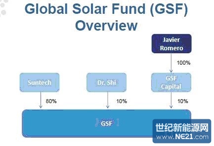 GSF基金是一家以投资欧洲太阳能开发项目的私募股权投资基金,基金总额逾3亿美元。此前,尚德电力、施正荣(通过其100%个人控股的公司)以及GSF Capital(Javier Romero100%控股)分别持有大约80%、10%、10%的股份。