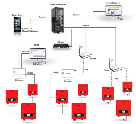 可通过互联网监控全球部署的光伏电站,自动进行数据采集