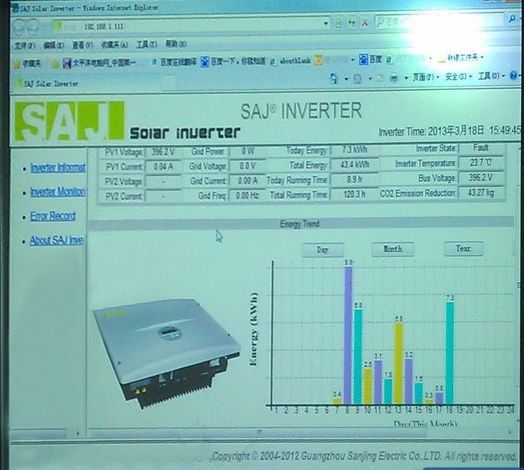 截止到今天,该系统已经运营了10天左右。虽然最近当地的天气阴睛不定,但从三晶新能源的Webserver监控数据中可以看出只要天气晴朗,这个1.8kWp的光伏小系统一天的发电量最高可以达到大约10度电左右。而这个系统每天所发的电可以全部用于办公室白天用电。