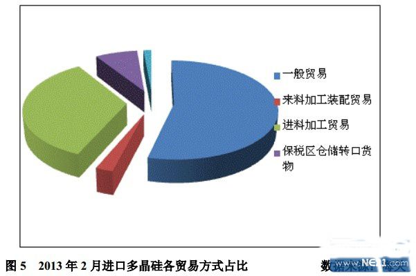 按贸易方式来分,2 月份我国一般贸易方式进口多晶硅 4317 吨,占比为 54%,加工贸易等方式进口 3674 吨,占比 46%。
