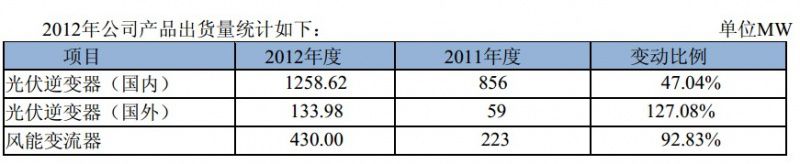 索比光伏网讯:04月01日,阳光电源公司公布2012年全年财报。阳光电源财报显示,光伏逆变器出货量为1392.6MW,同比增长52%,出货量遥遥领先,稳居中国市场和中国品牌第一名。营收超10.83亿元,增长24%。