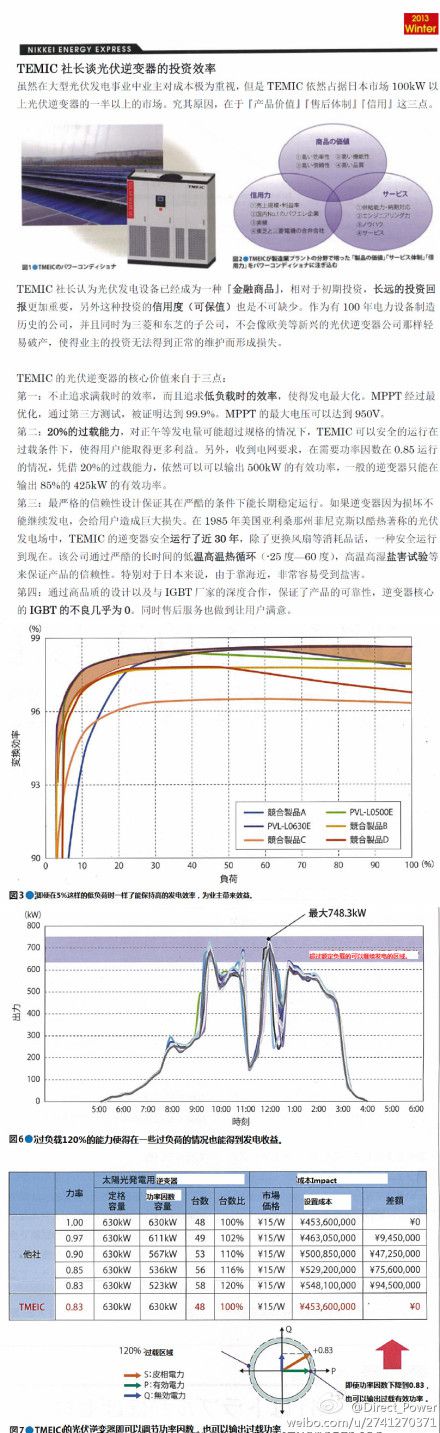 索比光伏网讯:在日本100kW以上的光伏逆变器市场,TEMIC占据了一半以上份额。今天看到TEMIC 社长谈光伏逆变器的投资效率的文章,感觉非常值得一读,勤快一些把最重要的部分翻译出来分享给大家。不但做逆变器的可以看看,对做光伏电站的人也有帮助。文章中把光伏设备比作金融商品,应该注重其带来的回报和能不能保值。
