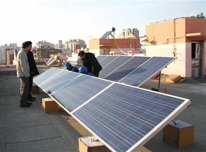 第一天产了8.5度电,去年12月至12月24日产了17.8度电。徐鹏飞告诉记者,和冬天相比,入春后的发电量已经在稳步上升。据徐鹏飞介绍,他的家庭“小发电站”全靠楼顶的两排9块太阳能电池板,设计的发电系统总装机容量是2千瓦,全部采用多晶硅电池板,并网电压是220伏,电量自发自用,但是发多发少全指望太阳。 “碰上雾霾天、阴天、雨天,一天能发一度电就不错,经常是颗粒无收,家里发电最怕的就是没太阳。 ”徐鹏飞回忆,在3月初的连续雾霾天中,家用电器就全靠电网,也卖不出去一度电,只有天气放晴时才能达到平均发电量的水平。