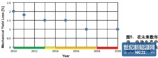 图5说明,到2020年,电池生产中的机械良率损失将下降至1%以下。这也包括了更薄的硅片的引入。