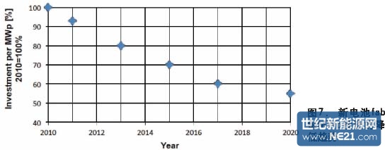 图7是由制造技术和设备所带动的新电池fab每MWp的投资降低趋势。该数据是基于参与调查的电池制造公司所提供的数据。