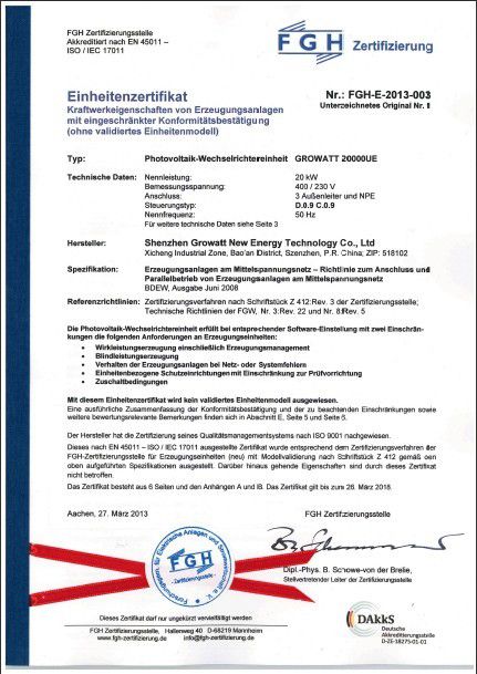 索比光伏网讯:日前,古瑞瓦特Growatt10-20KW三相逆变器顺利通过德国BDEW中压电网指令测试,成为国内首个在欧洲通过该认证并在当地分布式电站中获得广泛应用的逆变器品牌。