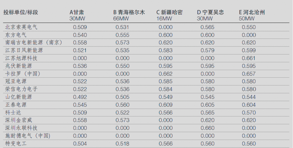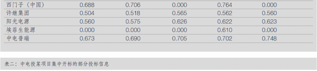 表二是中电投在今年六月十一日对超过400MW项目逆 变器开标的部分投标信息,不难看出,在第二季度末期逆 变器价格已经普遍达到0.5-0.65元/瓦,甚至一家企业的报 价已经低于0.5元/瓦。虽然在早期逆变器的利润空间比较客 观,但是随着大经济环境下整体运营成本的增加以及逆变器报价不断刷新新低,导致企业开始从多个角度考虑降低成本 以保证利润空间。