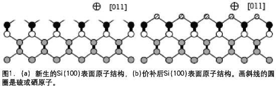 “价补(valence mending)”的概念是Kaxiras提出的,旨在解除半导体表面的悬空键。对于Si(100)表面,价补是用硫或硒的单原子层实现的。在新生Si(100)表面,每一表面原子占据二个悬空键,如图1(a)所示。这些悬空键是表面态的起源,它们钉扎表面费米能级。在金属/Si界面,费米能级钉扎效应使肖特基势垒高度与金属功函数没什么关系,主要受表面态(或更恰当地说是界面态)的控制。硫或硒的单原子层淀积在Si(100)表面时,它们在二个Si原子间桥接,很好地中止了Si(100)上的悬空键,如图1(b)所示。我们已有论文报道过硫或硒用于Si(100)表面的价补钝化,然而,对于万亿瓦级光伏应用,硫比硒丰富得多。
