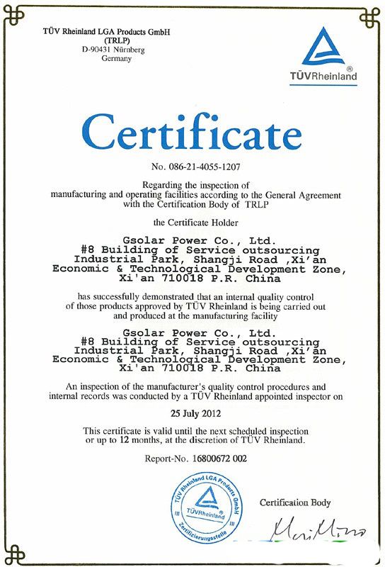 索比光伏网讯:近日,陕西众森电能科技有限公司顺利通过TUV年度审核,再次证明了陕西众森可靠的产品质量和完善的企业管理体系。