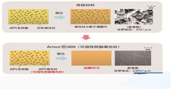 • 可溶性树脂填充材,均匀成膜,具有超高的机械强度及绝缘性;