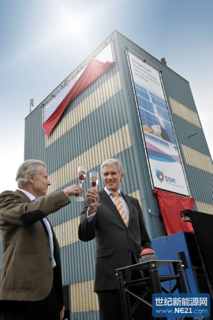 建成典礼上,帝斯曼首席创新官员Rob van Leen和帝斯曼KhepriCoat®产品在欧洲太阳能行业的首家特许经销商Interfloat公司董事总经理Ulrich Frei共同宣布新工厂成立。