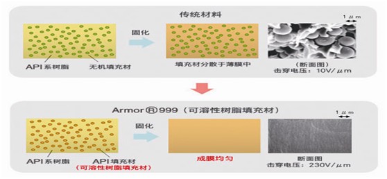 • 可溶性树脂填充材,均匀成膜,具有超高的机械强度及绝缘性;