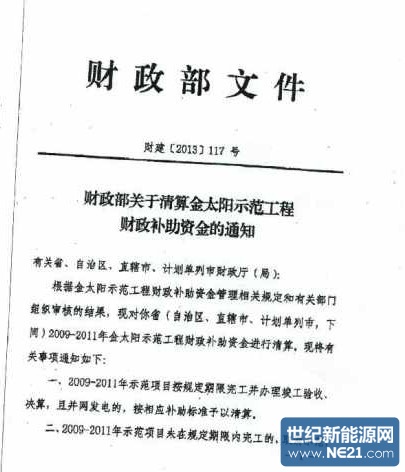 据世纪新能源网记者了解。此前,因2012年全球光伏装机量低于预期,光伏企业资金链吃紧,光伏国际贸易保护主义抬头,中国光伏企业损失严重,在海内外上市的光伏企业在2012财年几乎全部赤字。国家为缓解国内企业生存压力,先后批复2012年高达4.54GW金太阳项目。但金太阳工程并不能真正解决或者缓解中国光伏企业产能危机。自2009年以来金太阳政策所暴露出的问题也人尽皆知,金太阳补贴方式的改革或取消已迫在眉睫。随后,相关部门先后公布了促进分布式光伏发展意见、光伏产业准入制度(草案)、光伏发电价格政策通知(征求意见稿)等。但备受期待的度电补贴正式文件却迟迟未见下文。据内部人士透露,下一步,相关部门将先出台光伏产业准入制度,执行保大弃小。然后,在正式出台光伏度电补贴。其目的是保存具有国际竞争力的光伏企业。