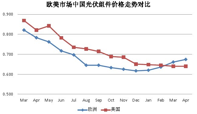 12年3月~11年4月欧美市场中国光伏组件价格走势