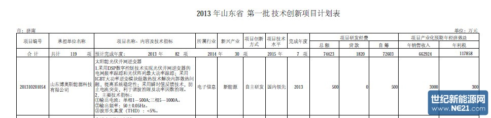 博奥斯光伏逆变器被列为2013年山东省技术创新计划