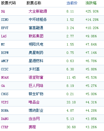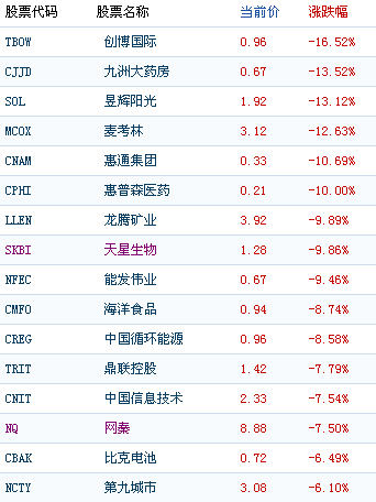 i美股中概太阳能指数(SLR10)下跌3.1%,报211.28点,成分股多数下跌,昱辉阳光跌13.12% ;天合光能跌5.12% ;晶澳太阳能 跌4.72% ;大全新能源 逆势涨25.93% 。
