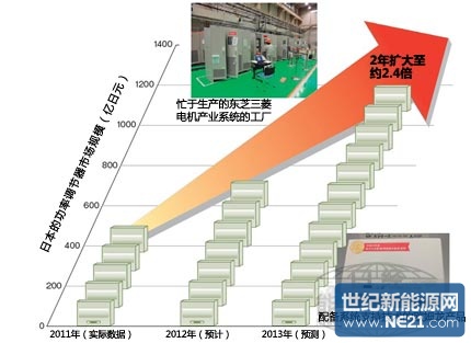 功率调节器承担着将太阳能电池输出的直流电力转换为交流电力的作用,其需求在日本国内迅速增大。东芝三菱电机产业系统公司在2011财年承接的订单量还不到100MW,而在2012财年,订单量飞速增加到10倍以上,有望超过1GW。