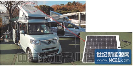 除了房车,在卡车及私家车上配备太阳能电池也将普及。其中,ICL公司、日本福禄好富公司及三菱化学公司在卡车的装货台面上设置了太阳能电池模块(图13)。即便在发动机停止运转时,也能利用太阳能电池所发电力,驱动设置于驾驶席处的空调,有助于改善卡车燃效。三家公司力争在2012年度内向市场投放相关产品。