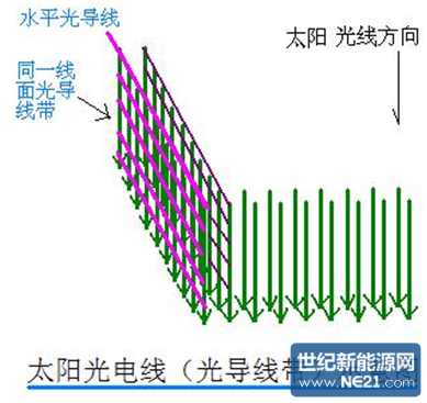 假设太阳光由无数条水平方向的光电线(即光导线)汇成,光子连接成线,同一线面的光带为光导线带。(如图1)