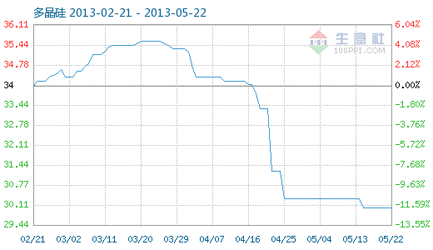 多晶硅商品指数自2013-3-25起,59天陆续下降了15.636%。