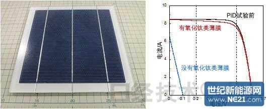 在外形尺寸为18cm×18cm的太阳能电池模块中应用此次开发的技术、并进行PID试验(-1000V、85℃、2个小时)后发现,试验前后转换效率的降幅很小。而普通的模块,试验前后转换效率会从15.9%大幅降至0.6%。估计出现PID现象的主要原因——玻璃中钠离子的扩散因薄膜而被阻断。