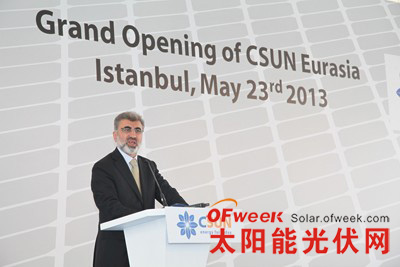 土耳其能源部部长Taner Yildiz 在演讲中指出了在当地建立光伏企业对与土耳其能源发展的重要性。他热烈祝贺CSUN土耳其工厂的开张,希望土耳其工厂能够进一步得到获取投资人的投资及更好的补贴。