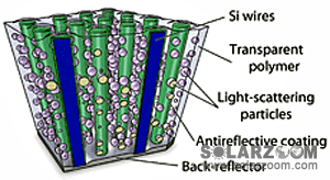 “我们的技术需要的硅材料只有传统工艺的1/50到1/100之间”, Harry Atwater如是说,“这项技术以均匀排列的一些类管线状硅基材为基础,对于光线的吸收以及光电子的收集与传统电池没有太多的差别”。