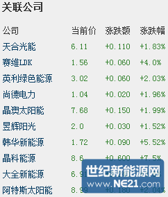 北京时间6月4日晚间消息,周二欧盟宣布将对中国光伏产品征收11.8%的临时反倾销税,低于此前公布的47.6%。受此影响,周二i美股中概太阳能指数高开高走,截至目前涨幅2.67%报252.28点;指数成分股皆上涨,截至目前晶科能源涨幅最高达7.5%,韩华新能源涨幅5.52%,赛维LDK涨幅4%等。