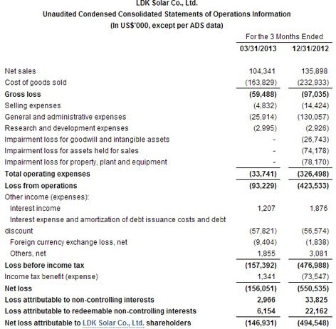 索比光伏网讯:北京时间6月11日,赛维LDK公布了2013年Q1季报,主要数据如下:
