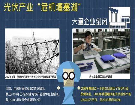 【光伏产业“危机堰塞湖”--大量企业倒闭】目前,中国多晶硅业9成企业倒闭。截止2009年我国已有350家光伏产业组件企业倒闭歇业。截止2012年光伏企业降至112家。