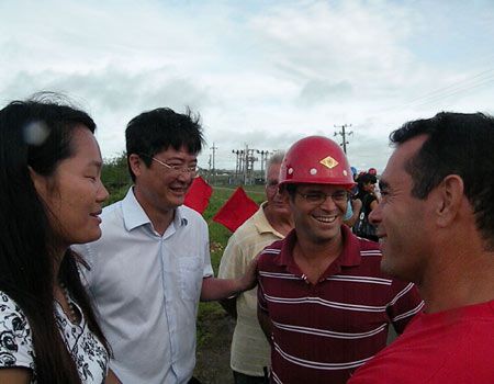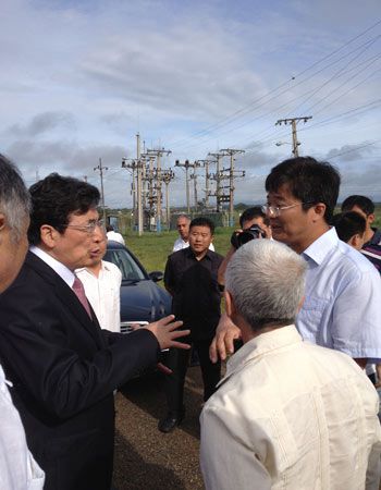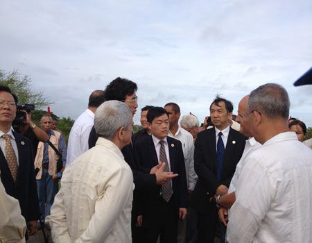 在当地时间6月2日上午九时,中央政治局委员、北京市委书记郭金龙在北控集团董事长王东、常务副总李永成陪同下,来到古巴项目现场进行了实地考察。郭书记与现场施工人员热情握手致以诚挚的问候,对全体工作人员为光伏电站建设所做出的努力给予了充分肯定,细心地嘱咐中方人员一定要把系统接入方案细化(提到60赫兹的并网频率),以符合当地入网条件的频率。
