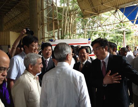 京仪集团副总经理李英龙和古巴人民一起交谈工作