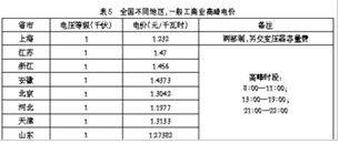 开放光伏发电市场,实现光伏发电的直接交易试点 光伏发电属黄金电力,其发电季节和发电时段与用电高峰基本吻合。目前,我国光伏发电的成本已经具备一定的商业化应用基础,成本在1元/千瓦时左右,全国不同地区,高峰电价不同,见表5。