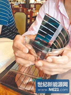 太阳能是全球重要的再生能源发展选项,除了主流的多晶与单晶硅太阳能产品,台湾朔荣有机光电科技总经理谢永生表示,该公司发展的透明软性有机薄膜太阳能产品,预计明年量产。这种软性太阳能电池可弯折、也可变化为多种颜色,应用广泛。
