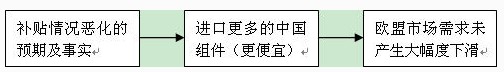 所以,仅凭借固定上网电价的补贴恶化没有导致欧盟需求量大幅度减少,便认为补贴情况恶化对欧盟光伏制造业影响不大从逻辑上讲是不充分的。