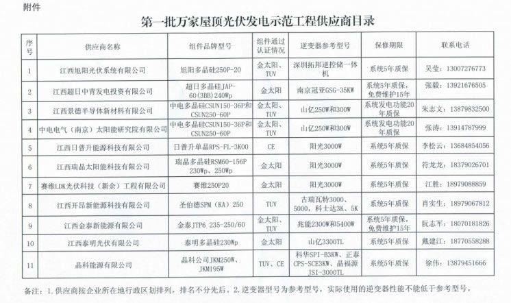 通知还指出,目前,成套光伏发电产品单价每瓦8-10元,例如,建设3千瓦光伏项目投资约2.4-3万元,居民和合同能源管理公司应充分考虑产品性能、质量、服务等因素,供应商不能为吸引用户片面压低价格,牺牲产品性能。