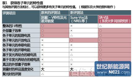 从SR-V法获得的特性来看,很多信息都是以前的测评方法和美国可再生能源实验室(NREL)等最近开发的测评方法所无法获得的(表1)。东京大学先进科学技术研究中心新能源领域冈田研究室特聘副教授曽我部东马介绍说,根据新查明的特性值,可以找到子单元的结晶性及膜厚等方面的改进点,“能够使化合物多结型光伏电池的转换效率提高1~2个百分点”。