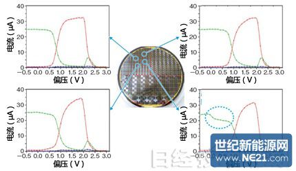 除了研发用途之外,新的测评方法还有望用于产品检查用途。用新方法测评其他国家厂商的化合物多结型光伏电池晶圆时发现,位于晶圆面内不同位置的子单元之间的特性存在偏差(图2),而采用原来测量整体I-V特性的方法时,则看不到这一特性差别。据东京大学介绍,这种特性不均有可能会对光伏电池的长期可靠性造成影响。(记者:河合 基伸,《日经电子》)