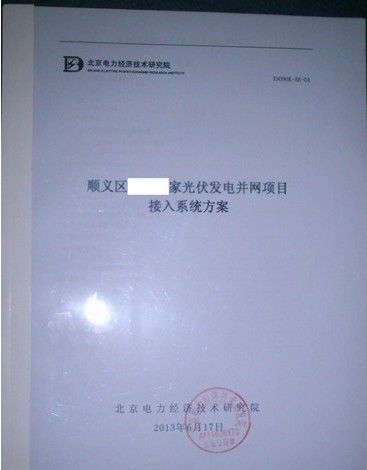 本项目建于2013年6月份,客户是一位别墅业主。业主在听到国家鼓励分布式光伏系统接入电网的消息后,主动找到我司,想在自己别墅屋顶上装一套光伏系统。经过实际现场勘查以及与顺义电力公司的沟通,我司精心准备一套5kWp的方案,针对业主屋顶的实际面积,采用26块195Wp的单晶硅组件,分成两行装在南面屋顶上,并配一台德国SMA7000HV高效逆变器组成并网光伏系统(逆变器容量冗余部分为业主后期扩容准备)。白天光伏系统发的电力可以直接被负载消耗掉,而多余的电力可以送到电网。电网公司在用户家里安装两块计量电表,按照用户送到电网的电量,按月给用户结算电费。目前项目已经建成,北京电力经济技术研究院已经针对本项目,给出了专业的接入系统方案。这意味着在电力公司方面已经取得了技术上的许可。而业主与电力公司的售电合同也将在近日签署。