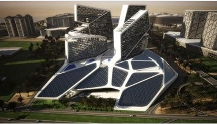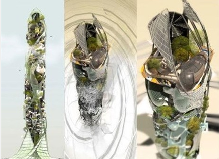 这座表面覆盖太阳能薄膜的大厦由肯尼思-劳和米歇尔-利姆设计,看上去就像是破土而出的怪物,而非人造建筑,它的外立面极不寻常:不仅近一半的区域以花园和绿地的形式暴露在外,而且还覆盖着太阳能电池薄膜。这栋建筑的核心是中空圆柱体结构,它可将热气从表面输送至各处,控制所有周围绿地、商业空间和住宅区的温度。