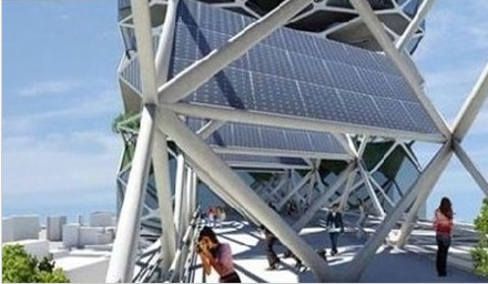 层叠式太阳能摩天大楼由豪尔赫-埃尔南德斯-拉加尔萨为墨西哥首都墨西哥城设计,这座巨大的垂直公园几乎每一层都安装有太阳能电池板,收集太阳能为整座城市的住宅、办公和休闲区域供电。豪尔赫之所以采用层叠式设计,是因为可以让大楼在必要性的情况下继续扩展,甚至是重新布置,从而令空中花园和城市农场的面积增大。