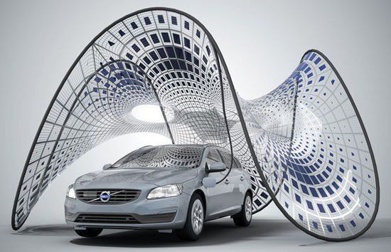 索比光伏网讯:全美有着超过6200个运营中的电动车充电站,但是在尚未覆盖的区域,车子抛锚或没电就麻烦了。为了化解这种尴尬,Synthesis Design+ Architecture、Buro Happold、以及Fabric Images,为意大利沃尔沃汽车设计了一个新的解决方案,可以让车子停在阳光下进行充电。