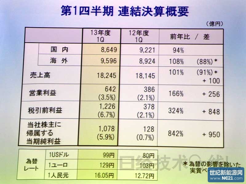 从事住宅相关业务的“节能解决方案部门”也表现出色。营业利润为161亿日元,较上年同期增长了344%之多。太阳能发电系统方面,日本的固定价格收购制度引发的紧急需求,成为一大推动因素。