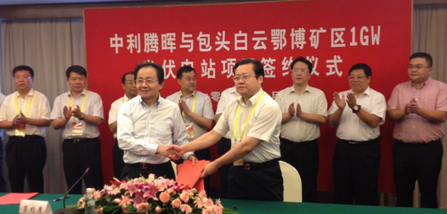 索比光伏网讯:中利腾晖与内蒙古自治区包头市白云鄂博矿区于8月13日在南京国际会议大酒店成功签订了1GW光伏电站项目协议。根据协议规定,中利腾晖在包头市白云鄂博矿区开发建设总计1GW光伏电站项目,项目总投资100亿元,分为五年开发建成。其中2013年至2014年年底投资建设并网不少于200MW,2015年至2017年投资建设并网800MW,这对中利腾晖在未来电站项目建设与新能源开发上具有重要意义。包头市市委常委副市长徐德林、市政协副主席市发改委主任杨泽繁,白云鄂博矿区区长张轩、常熟市副市长陈惠良、沙家浜镇党委书记张建强、中利集团董事长王柏兴等领导出席了此次签约仪式。
