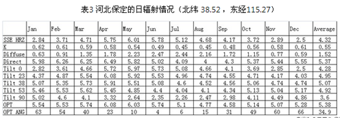 而通过NASA提供的的河北保定的日辐射情况显示,日平均满值小时数,水平面上是4.32小时,以向南34.9度倾斜是5.38小时。考虑系统损耗下的多年发电小时数约为1300-1600小时。