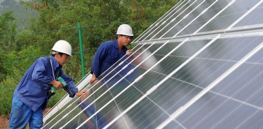 索比光伏网讯:8月15日,工人在承德县光伏发电项目工地安装设备。