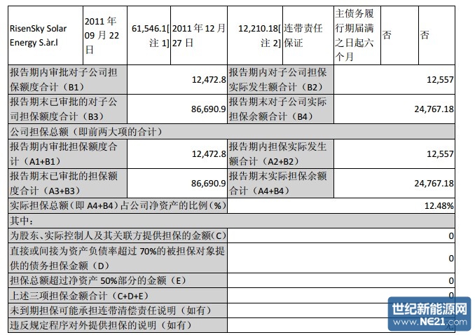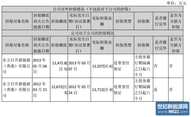 [注 1] 实际为 7000 万欧元,此为换算成人民币的金额。[注 2] 实际为 1519 万欧元,此为换算成人民币的金额。2011 年 12 月 27 日实际担保金额为 2619 万欧元,2013 年 3 月 31 已归还 1100 万欧元。[注 3] 实际为 2000 万美元,此为换算成人民币的金额。[注 4] 实际为 2000 万美元,此为换算成人民币的金额。[注 5] 实际为 2000 万美元,此为换算成人民币的金额。[注 6] 实际为 2000 万美元,此为换算成人民币的金额。
