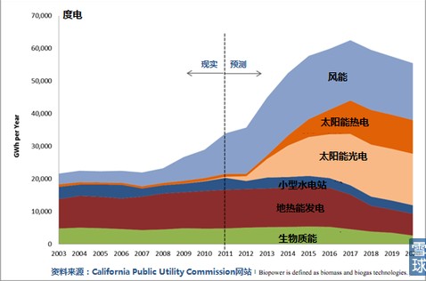 以美国加州为例,作为Solarcity的发源地,美国加州从2002年就提出了“到2010年止,可再生能源占电网电力比例达20%”的目标,并在2005年提出了“到2020年止,可再生能源占电网电力比例达33%”的目标,并将该目标在2011年写入法律。
