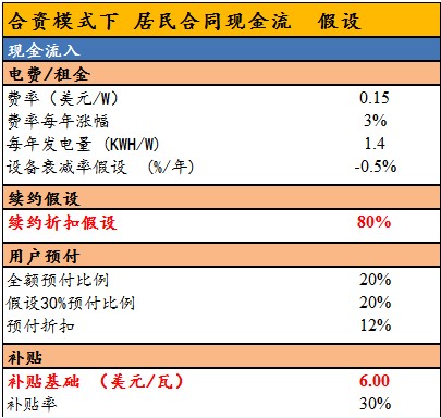 合租模式下,设备所有权属于基金投资者,加速折旧也属于基金投资者。但在转租模式下,设备所有权属于Solarcity,加速折旧也属于Solarcity。所以在转租模式下,加速折旧没法发挥全部作用,同时基金还款速度变慢,财务成本上升,净现金流NPV会变小。因此,在合资模式下,居民合同的净现值大约为1.7美元,转租模式下,居民合同的净现值大约是1.26美元。