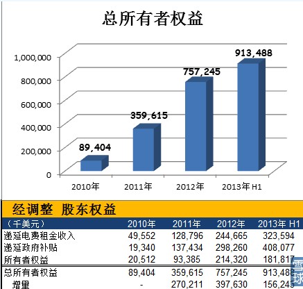 因此,将资产负债表上的“股东权益”、“递延电费租金收入”和“递延政府补贴”和在一起看,可以较全面地反映“股东权益的变化”。